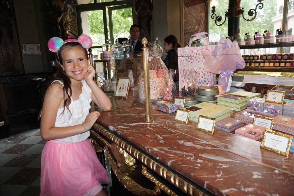 There’s nothing like a stop at Laduree on Champs Elysee for a beautiful afternoon. This was something special we planned with Little Miss in mind and as you can see she was enraptured with the experience. Shockingly after much trepidation on Teens part, he too enjoyed it thoroughly. There are SO MANY macaroon options to chose from and the fun of selecting flavors won them both over. We then ventured to the solarium for high tea (or hot chocolate in Teen’s case).
