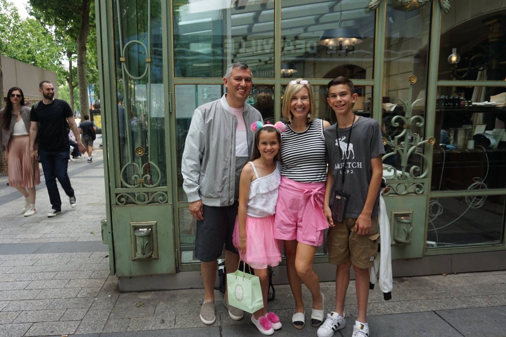 From London, we headed out on the EuroStar to Paris for our next not-so-little adventure. Once again we had a fabulous place to stay with a veiw to kill. We chose to stay in a more residential neighborhood rather than a touristy area so we could give our kids an authentic experience. Young school children head out alone to school. (and I mean YOUNG and ALONE-our kids really noted the cultural difference!) And Dr. D. loved the markets where he could pick up fresh fruit-specifically the fresh squeezed orange juice machines!