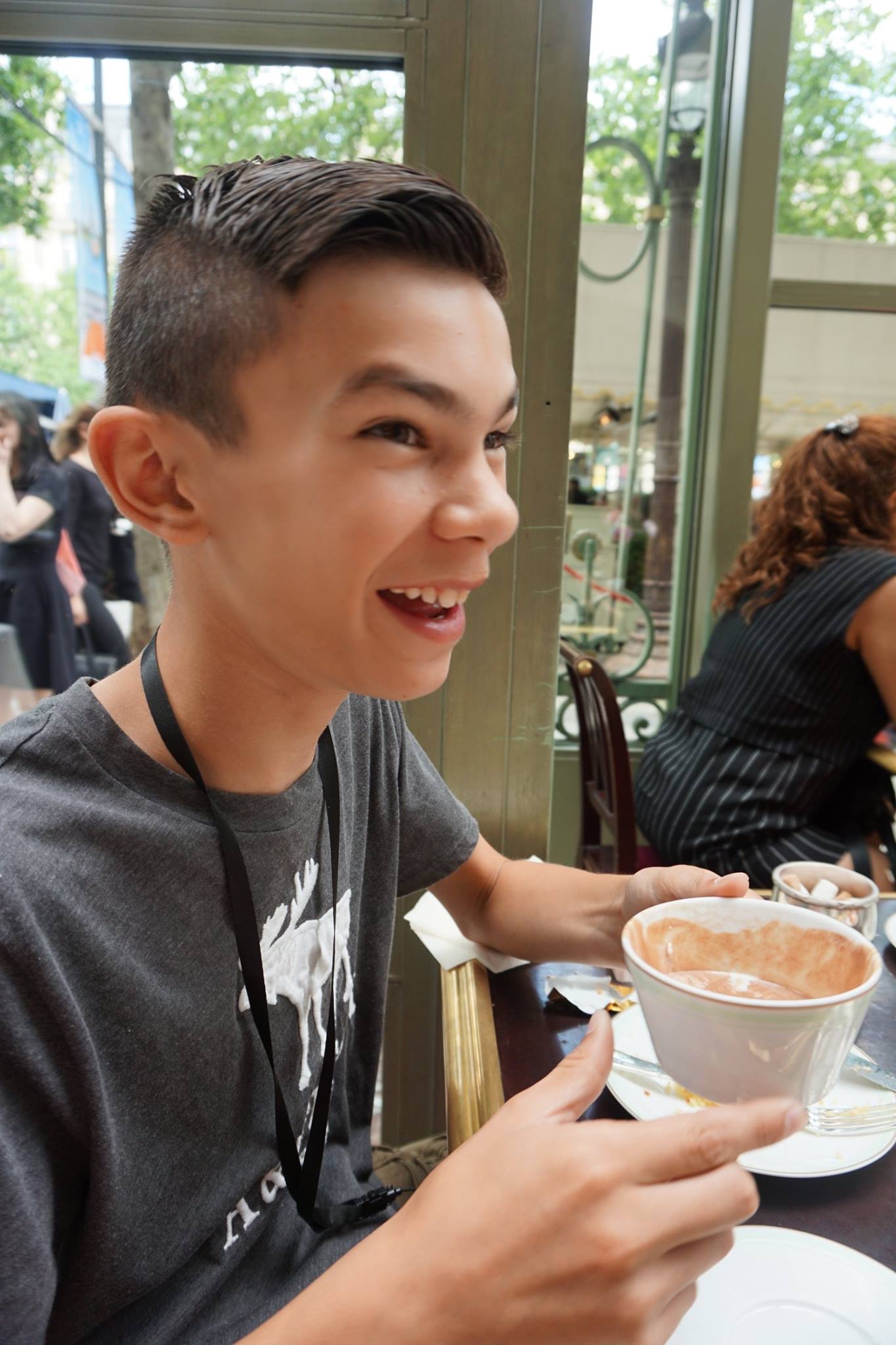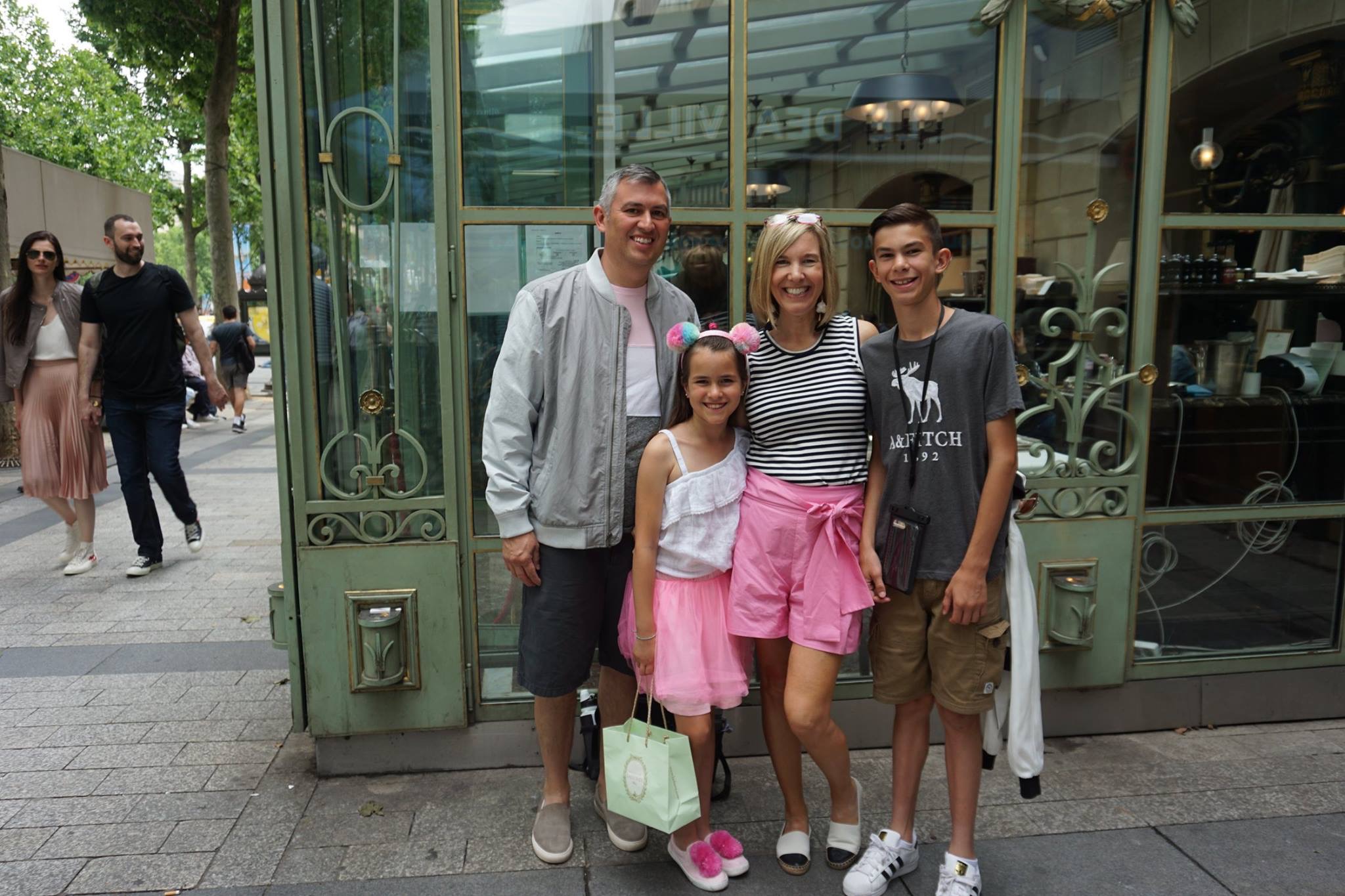 There’s nothing like a stop at Laduree on Champs Elysee for a beautiful afternoon. This was something special we planned with Kiki in mind and as you can see she was enraptured with the experience. Shockingly after much trepidation on Nickel’s part, he too enjoyed it thoroughly. There are SO MANY macaroon options to chose from and the fun of selecting flavors won them both over. We then ventured to the solarium for high tea (or hot chocolate in Nickel’s case).